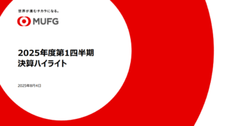 銘柄分析 【三菱UFJ】利上げ遅れ気味 業績現状を確認(2025年度1Q決算) こんにちは、あらおです。 8/4に、下記の三菱UFJフィナンシャルグループの2025年度1Qの決算概要が公表さ... 2025.10.12 銘柄分析