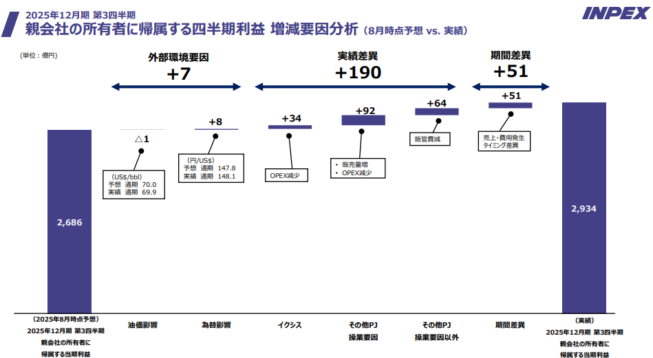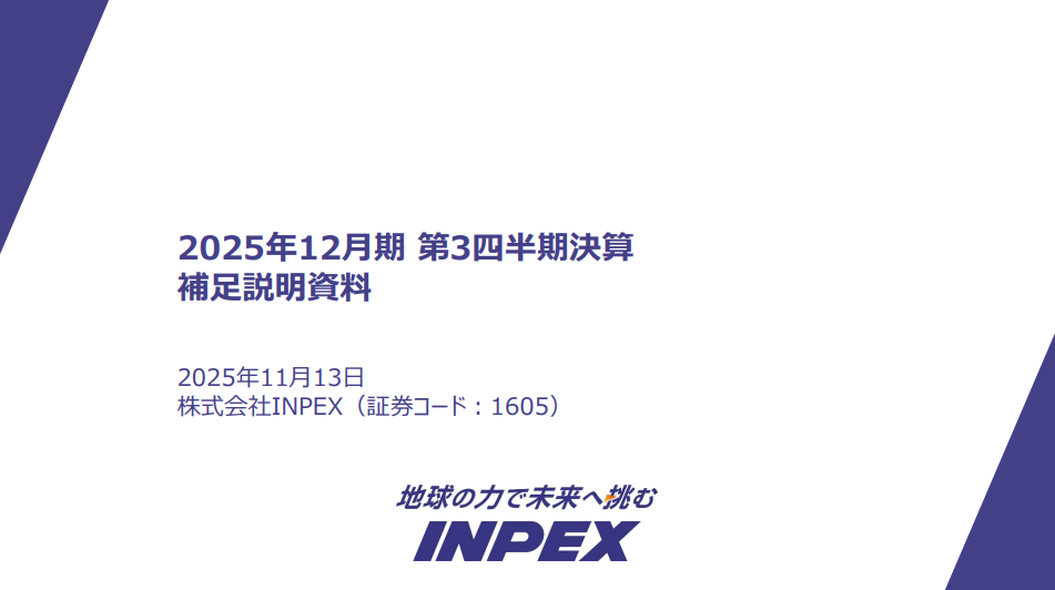 11/13に、下記の通りINPEXの2025年3Qの決算説明会がありました。