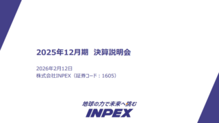 こんにちは、あらおです。 2/12に、下記の通りINPEXの2025年4Qの決算説明会がありました。 2025...