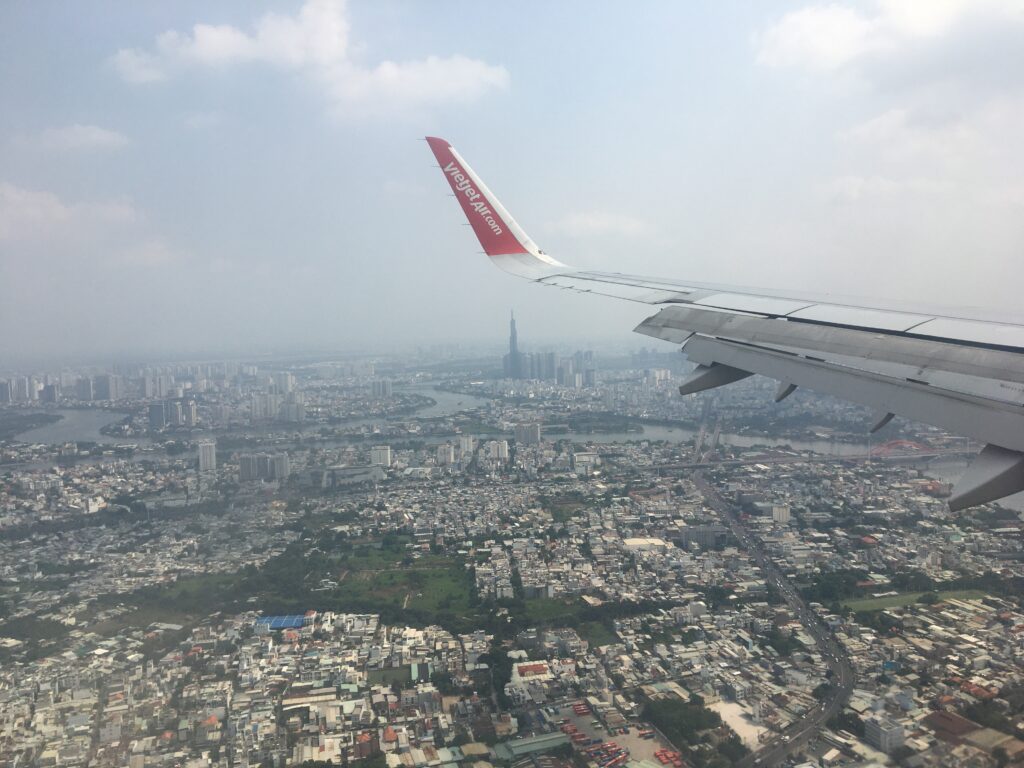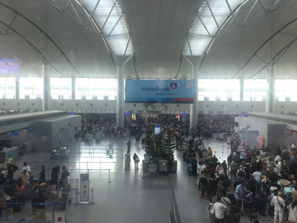 タンソンニャット空港(ホーチミン)に到着。熱気がすごく、東南アジア来た感を存分に感じられました。