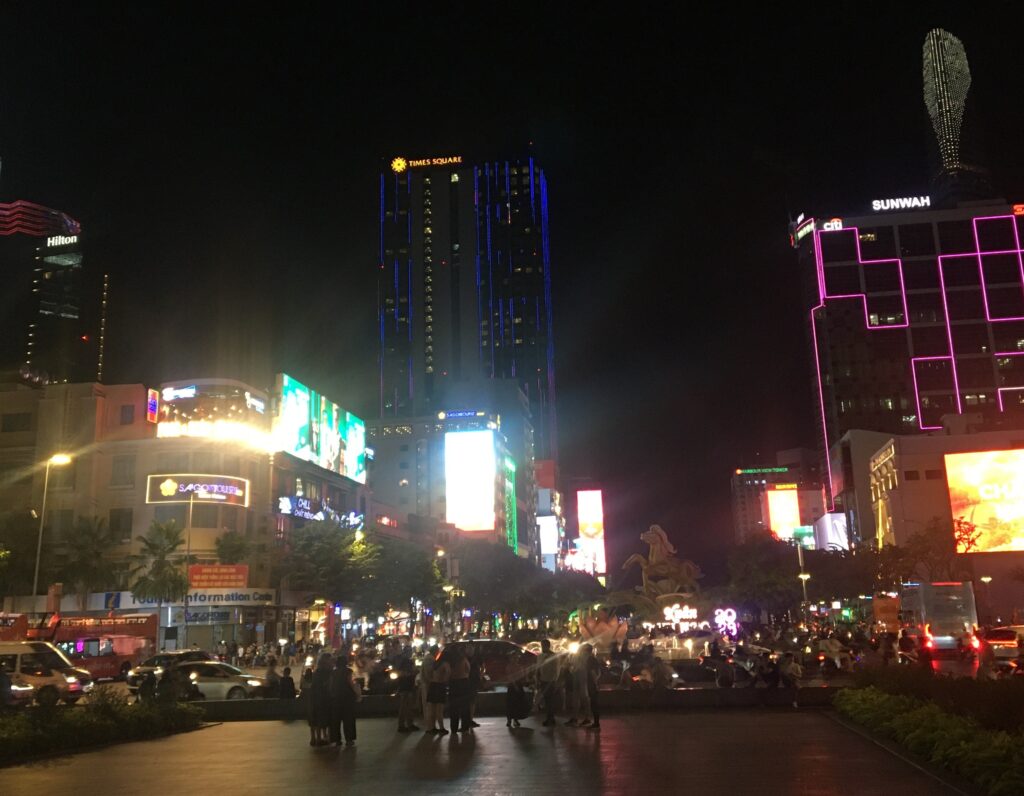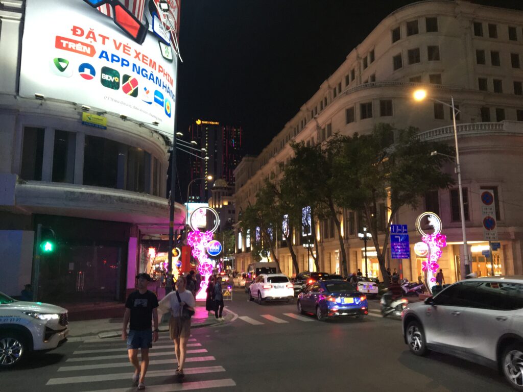 ホーチミンの銀座?っぽいところはこんな感じ。21時とか22時くらいでも賑やかです。