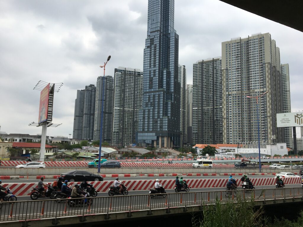 こちらはホーチミンの最高級タワマン街。様々な施設が内在し、1年中籠っても生活できるそうです。日本のタワマンも霞んで見えるド迫力。